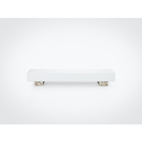 Узкий прямоугольный столик на ножках из дерева, окрашенного в белый цвет со старением. Глянцево-белая столешница. Столик можно использовать в качестве кофейного или как консоль под TV.