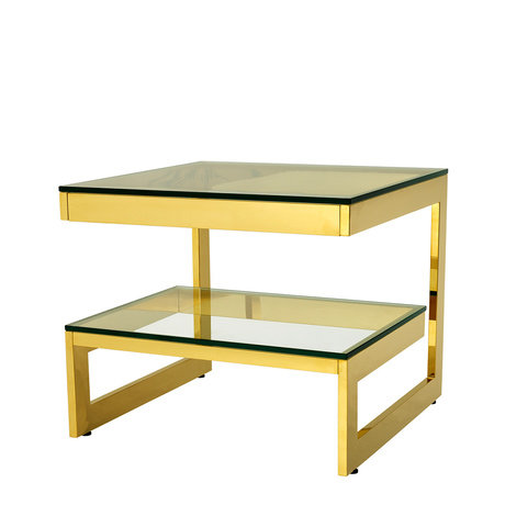 Приставной столик Side Table Gamma на металлическом основании золотого цвета. Столешница выполнена из плотного прозрачного стекла.