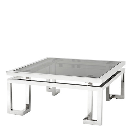 Журнальный столик Coffee Table Palmer с каркасом из нержавеющей стали. Столешница выполнена из плотного стекла дымчатого цвета.