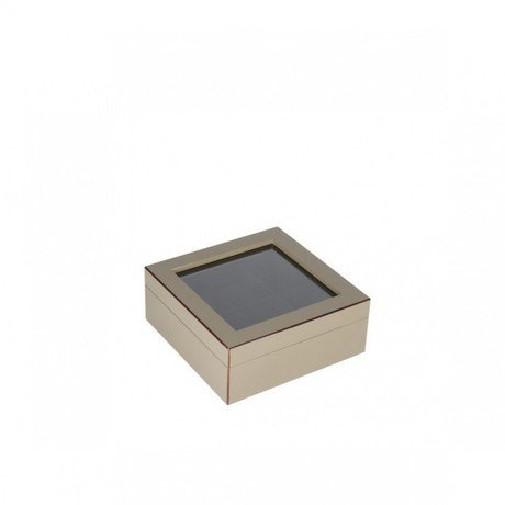 Шкатулка для часов Tang бежевого цвета. Удобная шкатулка для часов с прозрачным окошком сверху. Она не больших размеров, но всегда поможет содержать часы на видном месте, защищенные от пыли и других воздействий. Шкатулка универсальна и подойдет для хранения как мужского, так и женского аксессуара.