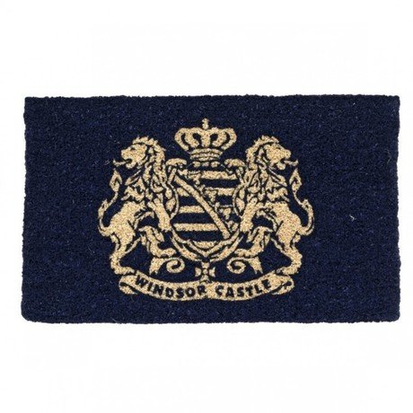 Коврик под дверь с надписью «Windsor castle». Не обычный дверной коврик с изображением двух львов и надписью. Стильный коврик понравится любителям классики, классических интерьерных решений. Его можно укладывать в холлах, вестибюлях, коридорах, в лифтовых кабинах или подъездах.