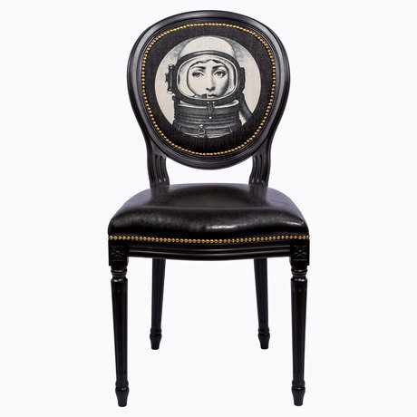 Стул "Космос" - интерьерный экспонат, достойный восторга воплощенной фантастики. Каждая деталь вызывает удивление и надолго задерживает взгляд. Гирлянда золотистых анкеров искрится вокруг черного корпуса подобно драгоценностям. Корпус украшен тончайшей резьбой, кольцами и желобками, выполненными с ювелирной меткостью. Особенно эффектно кристальная резьба выглядит при ярком освещении, акцентируя глянцевый черный корпус, внушая мебели салонный шик и респектабельность.