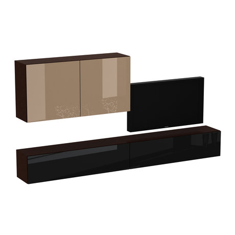 Композиция для гостиной. Все модули коллекции Сubo крепятся к стене. Двери шкафов и выдвижные ящики открываются по принципу «нажал-открыл».