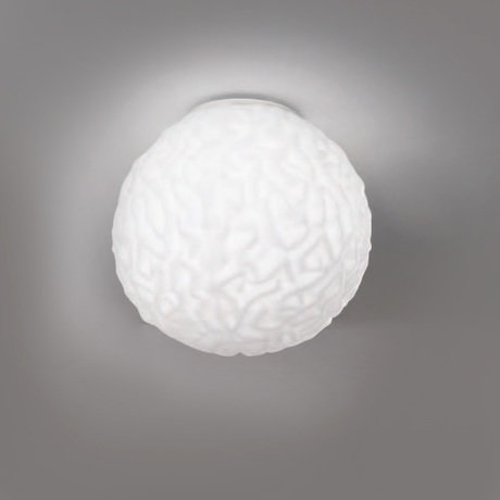 Потолочный светильник на арматуре из точеного нарезного алюминия, отделка белая матовая с лакокрасочным покрытием. Плафон выполнен из белого стекла с трехслойным покрытием, неправильной формы, отделка - травление. Ручная работа лучших итальянских мастеров-стеклодувов. Светильник может использоваться как настенный. Количество лампочек: 1. Мощность: 1 x 150 Вт. Тип лампы: Накаливания, E27.