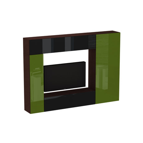 Композиция для гостиной. Все модули коллекции Сubo крепятся к стене. Двери шкафов и выдвижные ящики открываются по принципу «нажал-открыл».