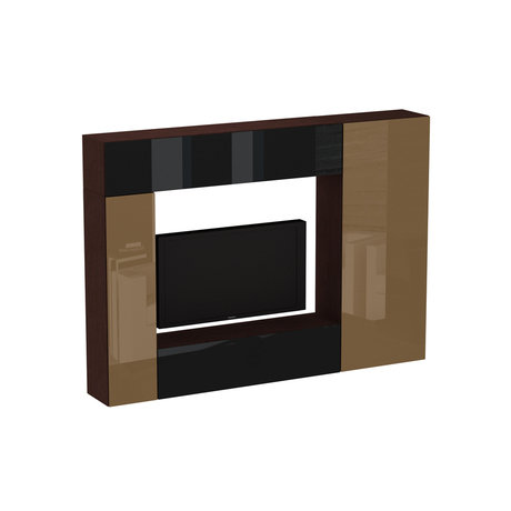 Композиция для гостиной. Все модули коллекции Сubo крепятся к стене. Двери шкафов и выдвижные ящики открываются по принципу «нажал-открыл».