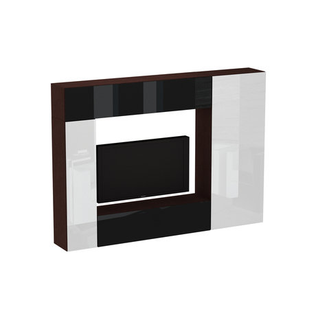 Композиция для гостиной. Все модули коллекции Сubo крепятся к стене. Двери шкафов и выдвижные ящики открываются по принципу «нажал-открыл».