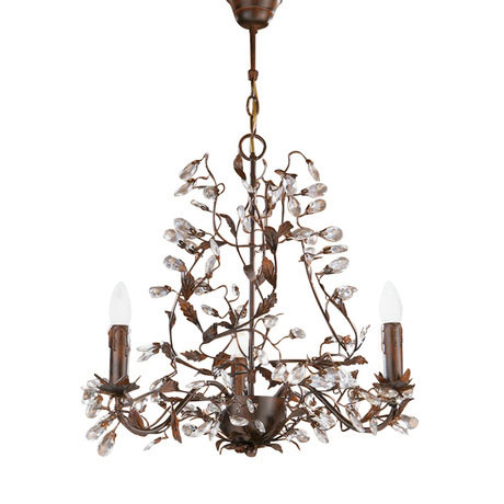 Световые элементы флорентийского подвесного светильника серии VERDI выполнены в виде свечей, размещённых на металлическом основании с покрытием "тёмная ржавчина". Люстра украшена декоративными элементами в виде стеблей и листьев. Элементы дополнены подвесками из граненого стекла. Высота светильника регулируемая до 100 см. Вес: 2.8 кг.