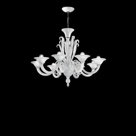 Люстра 8-ми-рожковая выполнена из муранского стекла молочно-белого цвета. Лампы украшают кулоны белого цвета и прозрачные вставки. Крепление выполнено из хромированного металла. Ручная работа лучших итальянских мастеров. Дизайн: SYLCOM GLASS DESIGN. Количество лампочек: 8. Мощность: 8 x 40 Вт. Тип лампы: Накаливания, E14.