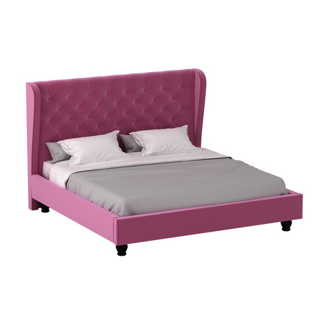 Двуспальная кровать с высокой спинкой и декоративными элементами . Спинка декорирована пуговицами. Кровать установлена на фигурные деревянные ножки. Выполняется в трёх вариантах размеров спального места: 2000х2000 мм, 1800х2000 мм и 1600х2000 мм. Высота спального места:425 мм. Основание: металлическое с эластичными латами из фанеры.