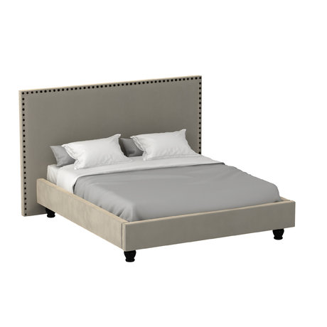 Двуспальная кровать с высокой спинкой и декоративными элементами. Спинка декорирована пуговицами. Кровать установлена на фигурные деревянные ножки. Выполняется в трёх вариантах размеров спального места: 200х200 см, 180х200 см и 160х200 см. Основание: металлическое с эластичными латами из фанеры.