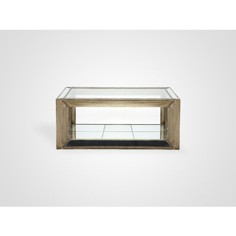 Производство: Китай. Дизайн: США. Стол кофейный прямоугольный, декорирован вставками из зеркал. Столешница из прозрачного стекла.