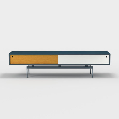 Тумба ТВ Long из коллекции Tube отличается необычным дизайном и функциональностью. Тумба оснащена двумя раздвижными дверцами. основание - металл, эмаль бирюзовая, корпус - шпон дуба, мдф, эмаль бирюзовая, фасады - шпон дуба, тонировка, эмаль белая-лак.