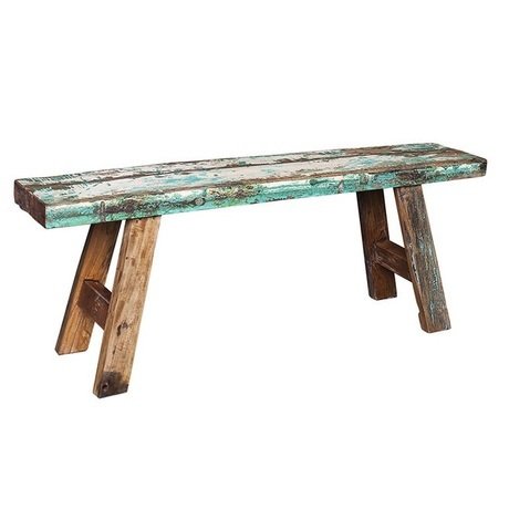 Скамья, выполненная из массива древесины старого рыбацкого судна, такой как: тик, махагони, суар, с сохранением оригинальной многослойной окраски.