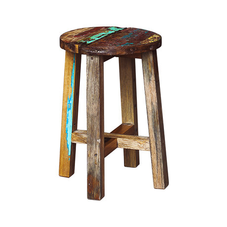 Табурет, выполненный из массива древесины старого рыбацкого судна, такой как: тик, махагони, суар, с сохранением оригинальной многослойной окраски.