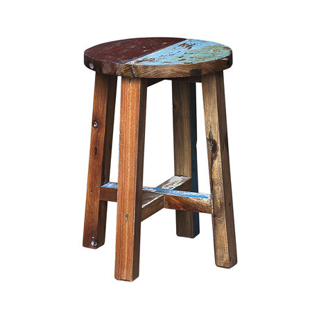 Табурет, выполненный из массива древесины старого рыбацкого судна, такой как: тик, махагони, суар, с сохранением оригинальной многослойной окраски.