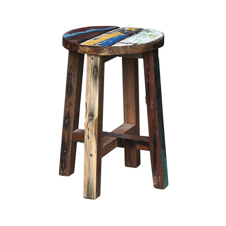 Табурет, выполненный из массива древесины старого рыбацкого судна, такой как: тик, махагони, суар, с сохранением оригинальной многослойной окраски.