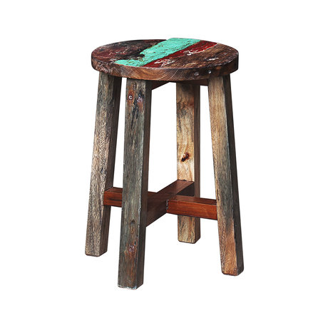 Табурет, выполненный из массива древесины старого рыбацкого судна, такой как: тик, махагони, суар, с сохранением оригинальной многослойной окраски.