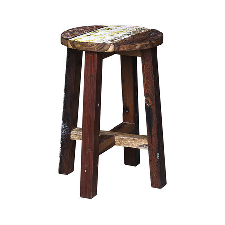Табурет, выполненный из массива древесины старого рыбацкого судна, такой как: тик, махагони, суар, с сохранением оригинальной многослойной окраски.