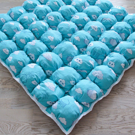 Игровой коврик бомбон с облачками. Производство Россия. Игровой коврик ручной работы из экологичных натуральных материалов. Игровой коврик бомбон очень пушистый. Подходит для игр на полу. Размер для вигвама 110 х 110 см. Материал: верх - цветной 100% хлопок, низ - 100% хлопок однотонный белый; наполнитель - синтешар.