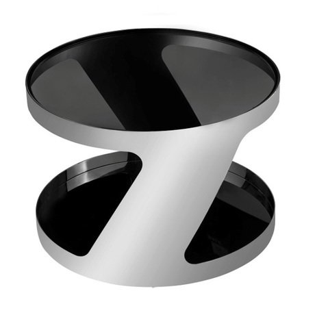 Визуальную легкость предмету придают две скошенных металлических ножки. Материалы: сталь, закаленное стекло.