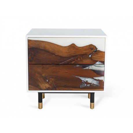 Тумбочка - фасады из массива американского ореха, корпус, который может быть покрашен в любой цвет по RAL, латунные наконечники на ножках, ящики на доводчиках и push to open - ну не красота ли?