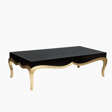 Элегантный журнальный стол, выполненный из дерева, в черном и золотом цветах станет истинным украшением интерьера в стиле арт-деко. Изделие также может служить подставкой для рамок с фотографиями, цветов или элементов декора.