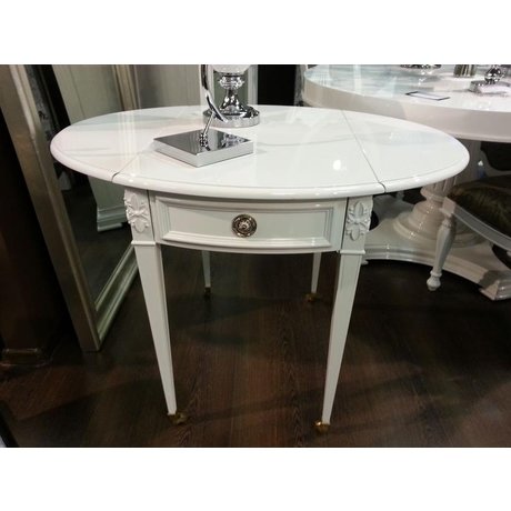 отделка белый блестящий лак, в раздвижном виде длина стола 99 см.